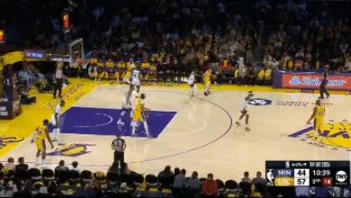 擋拆、突破,壓縮對手防線,典型的詹姆斯助攻方式。不同之處,里夫斯並未三分終結,而是選擇持投中距離。