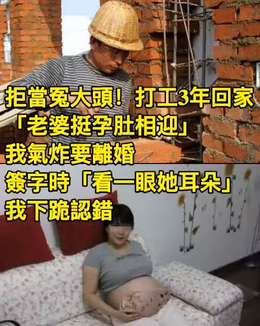 拒當冤大頭!打工3年回家「老婆挺孕肚相迎」我氣炸要離婚 簽字時「看一眼她耳朵」我下跪認錯