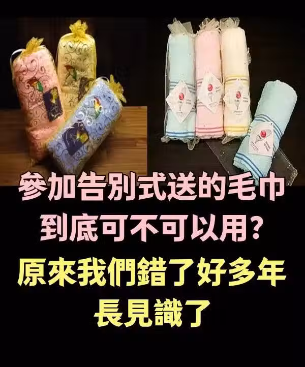 喪家舉辦喪禮時都會送參加者一條毛巾, 原來意在方便人們在長時間的喪禮中擦眼淚或汗水, 有許多人認為為毛巾會帶有晦氣, 但其實是多考慮的, 如果真的在意, 將毛巾洗過之後即可正常使用。