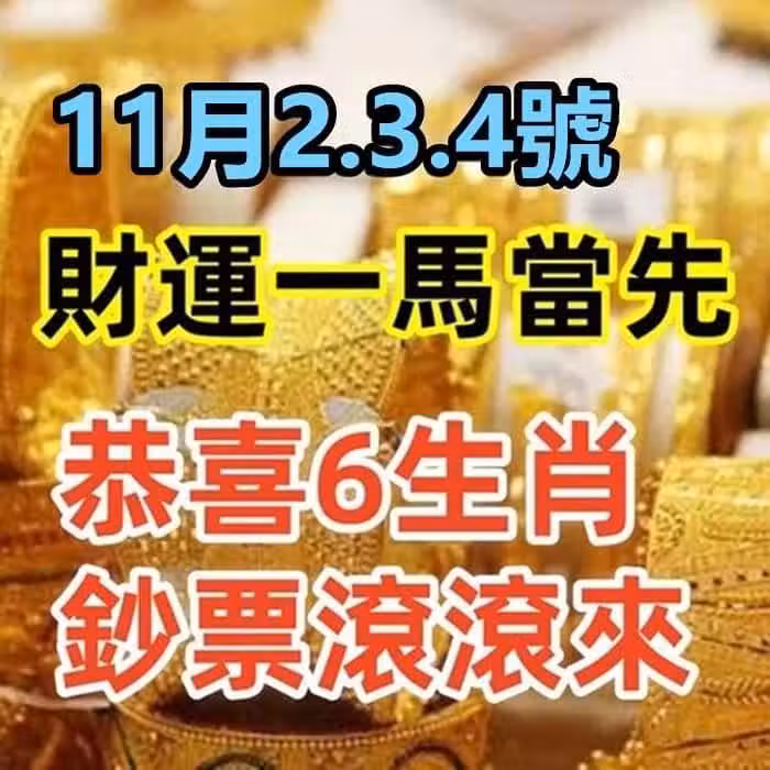 11月2.3.4號財運一馬當先,恭喜6生肖鈔票滾滾來!