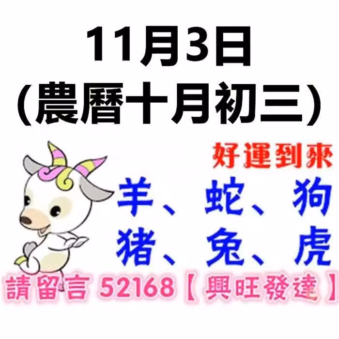 小運播報:2024年11月3日,星期日,農曆十月初三。