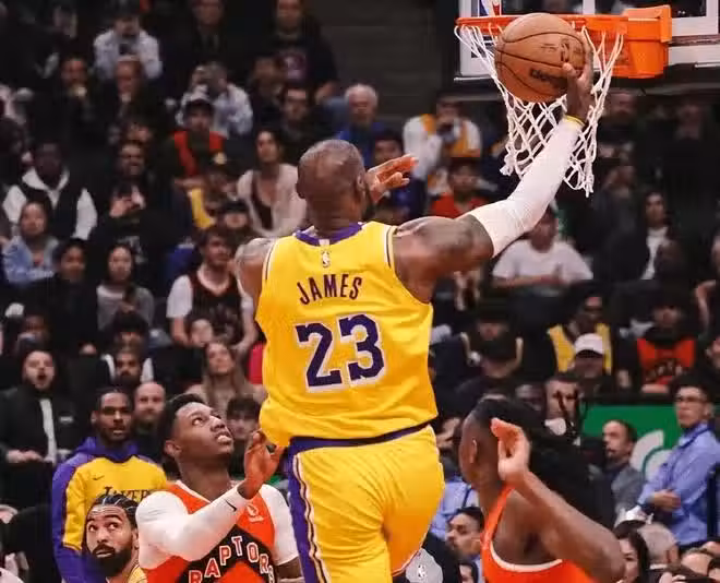 老詹的表現為湖人贏球奠定基礎,第二節湖人選擇穩紮穩打,猛龍一直無法迫近分差,迪克盡力了。半場湖人反而把分差拉開到25分。濃眉本場把猛龍內線鑿爛了。下半場巴雷特開始率領猛龍反攻,他連得12分,猛龍已經追到只差8分。關鍵時刻還得詹姆斯三分打進止血,湖人勉強領先11分。末節猛龍最少時已經追到6分。