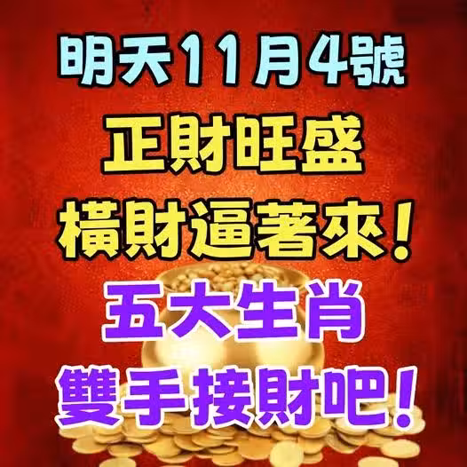 明天11月4號,正財旺盛,橫財逼著來!五大生肖雙手接財吧!