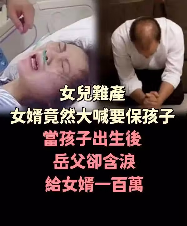 女兒難產 女婿竟大喊要保孩子 當孩子出生後 岳父卻含淚給女婿一百萬