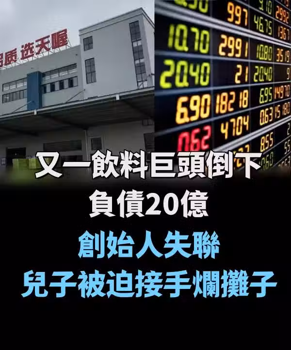 又一飲料巨頭倒下,負債20億,創始人失聯,兒子被迫接手爛攤子