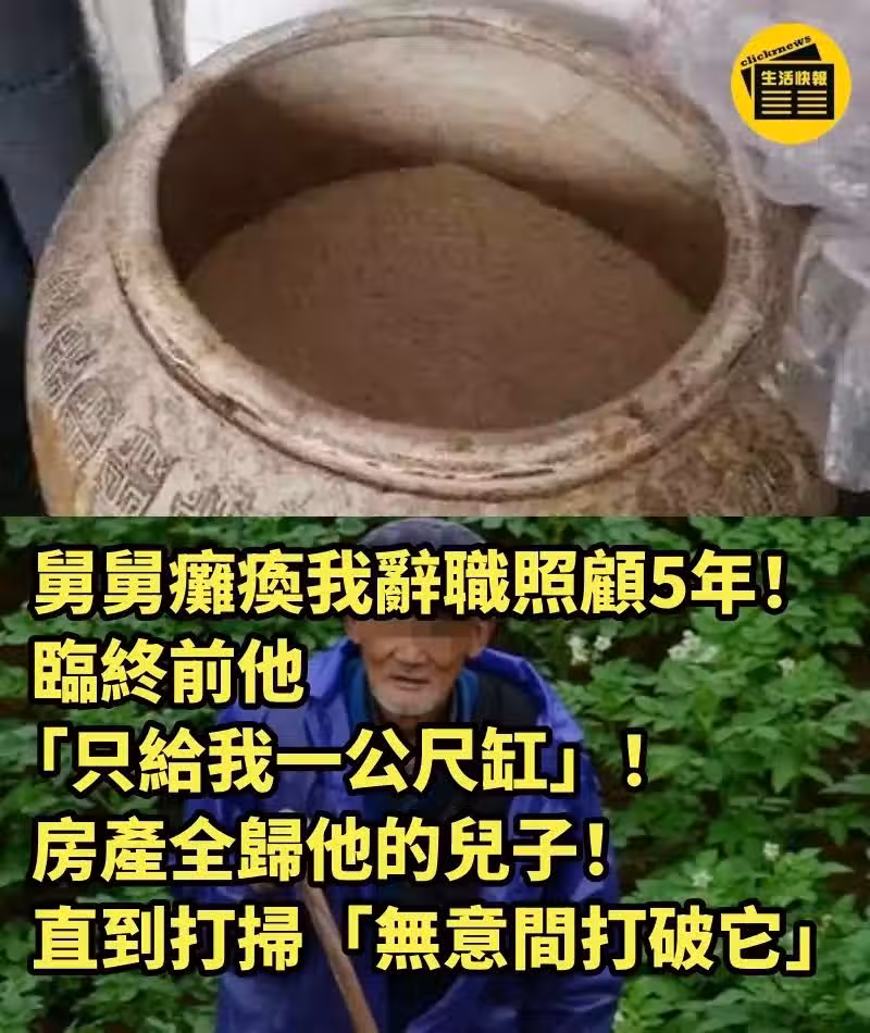 舅舅癱瘓我辭職照顧5年! 臨終前他「只給我一米缸」房產全歸兒子,直到打掃「無意間打破它」..