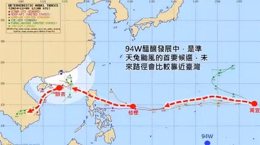 「11月份,同時有3個颱風,要追溯到30年前!」氣象專家林德恩表示,經初步評估,最有機會影響台灣的為準熱帶性低氣壓94W,未來有增強變成颱風的潛力;根據國際命名,如果准熱帶性低氣壓94W生成颱風,將成為今(2024)年第25號颱風「天兔」。