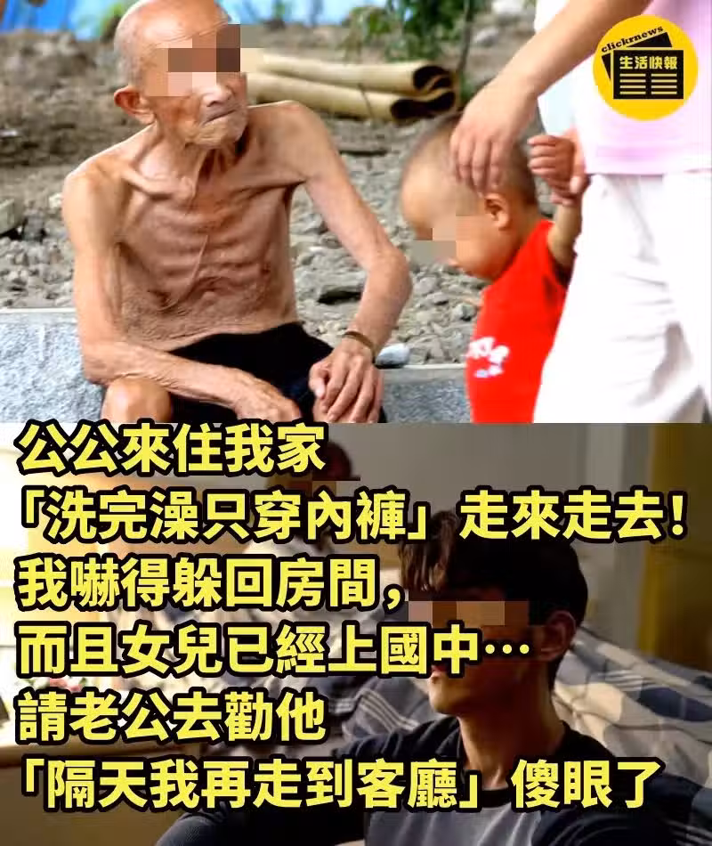 公公來住我家「洗完澡只穿內褲」走來走去! 我嚇得躲回房間,而且女兒已經上國中…請老公去勸他 「隔天我再走到客廳」傻眼了