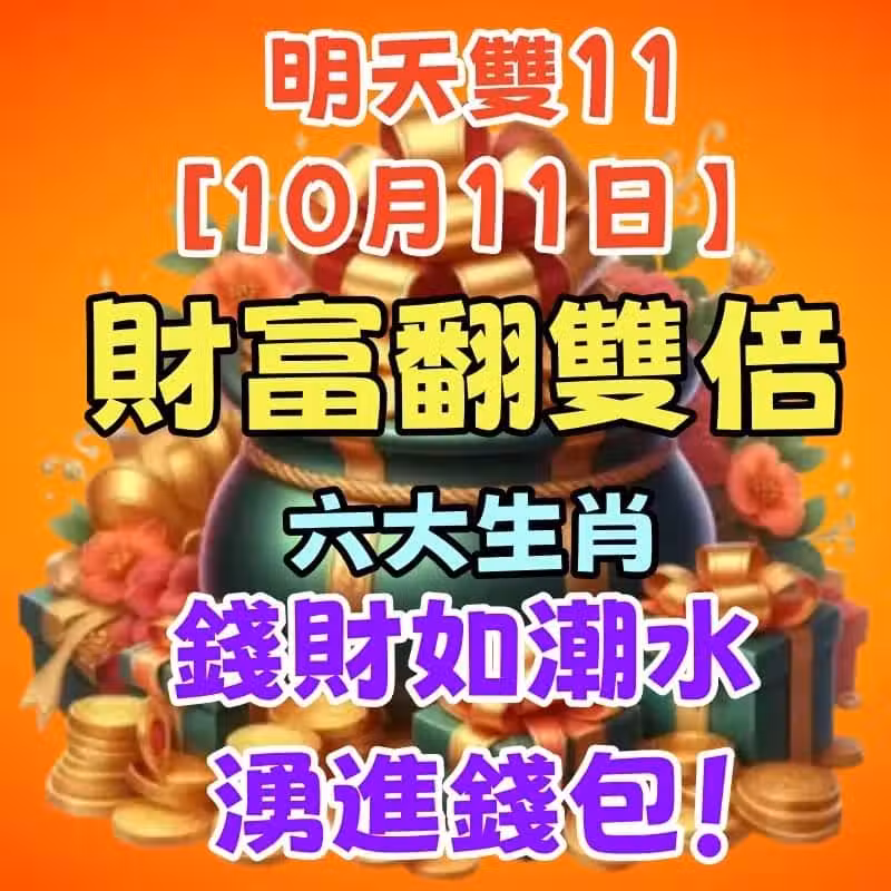 今天雙11 [10月11日】,財富翻雙倍,六大生肖錢財如潮水湧進錢包!