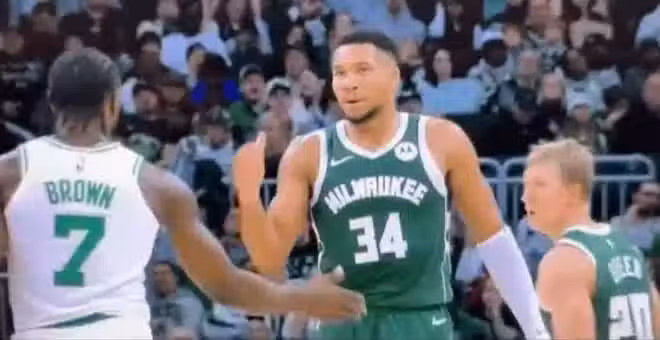 而且在賽後布朗怒噴字母哥:「我不知道他怎麼想的,但這種行為簡直就是個孩子,但是我懶得跟他計較,我只想幫我們贏球。」有的時候這故作幽默其實就是為了化解內心的尷尬,你給了別人一肘把別人撞倒了,現在想過來擊掌還虛晃一槍變成挑釁動作,誰給他的自信?