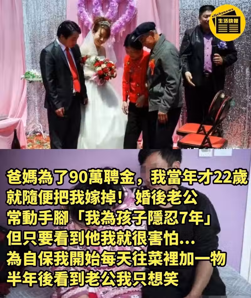 爸媽為了90萬聘金,我當年才22歲就隨便把我嫁掉! 婚後老公常動手腳「我為孩子隱忍7年」,但只要看到他我就很害怕...為自保「我開始每天往菜里加一物」半年後看到老公我只想笑