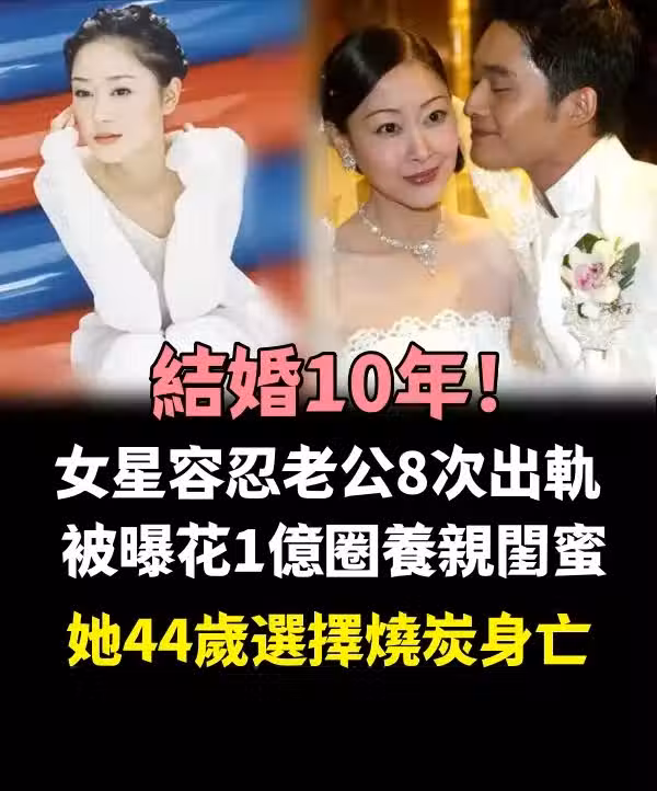結婚10年!女星容忍老公「8次出.軌」 被曝「花1億圈養親閨蜜」她44歲選擇燒炭身亡