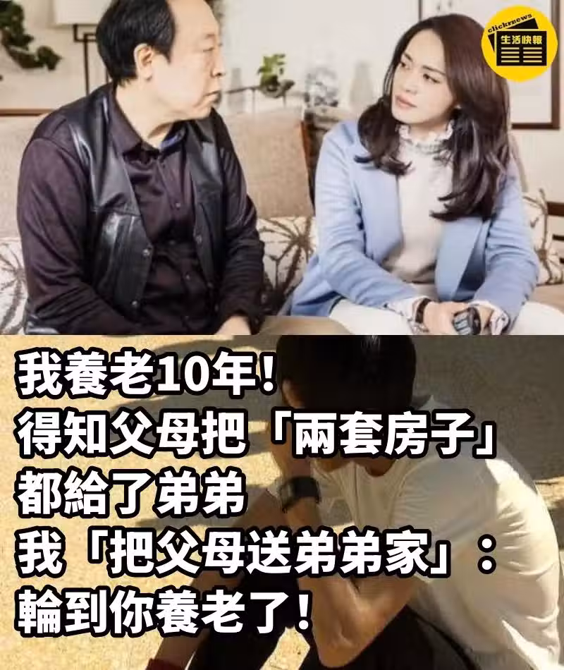 我養老10年! 得知父母把「兩套房子」 都給了弟弟 我「把父母送弟弟家」: 輪到你養老了!