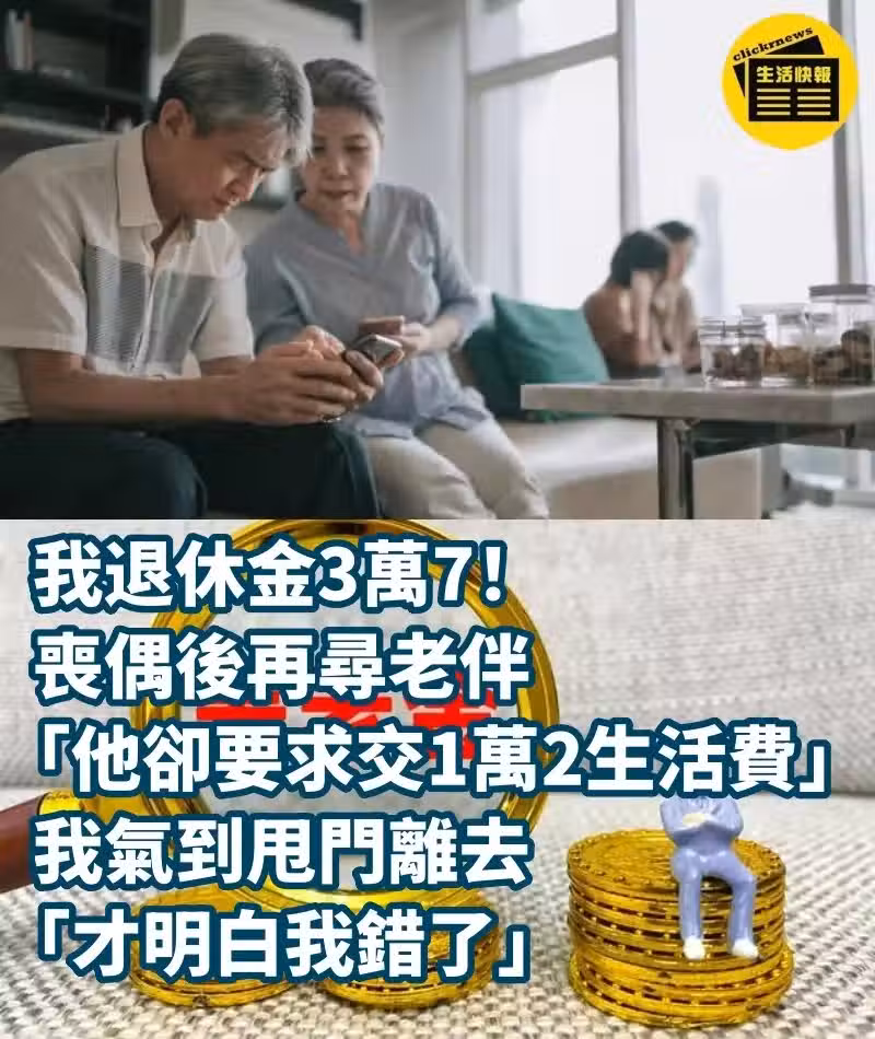 我退休金3萬7!喪偶後再尋老伴「他卻要求交1萬2生活費」 我氣到甩門離去「才明白我錯了」