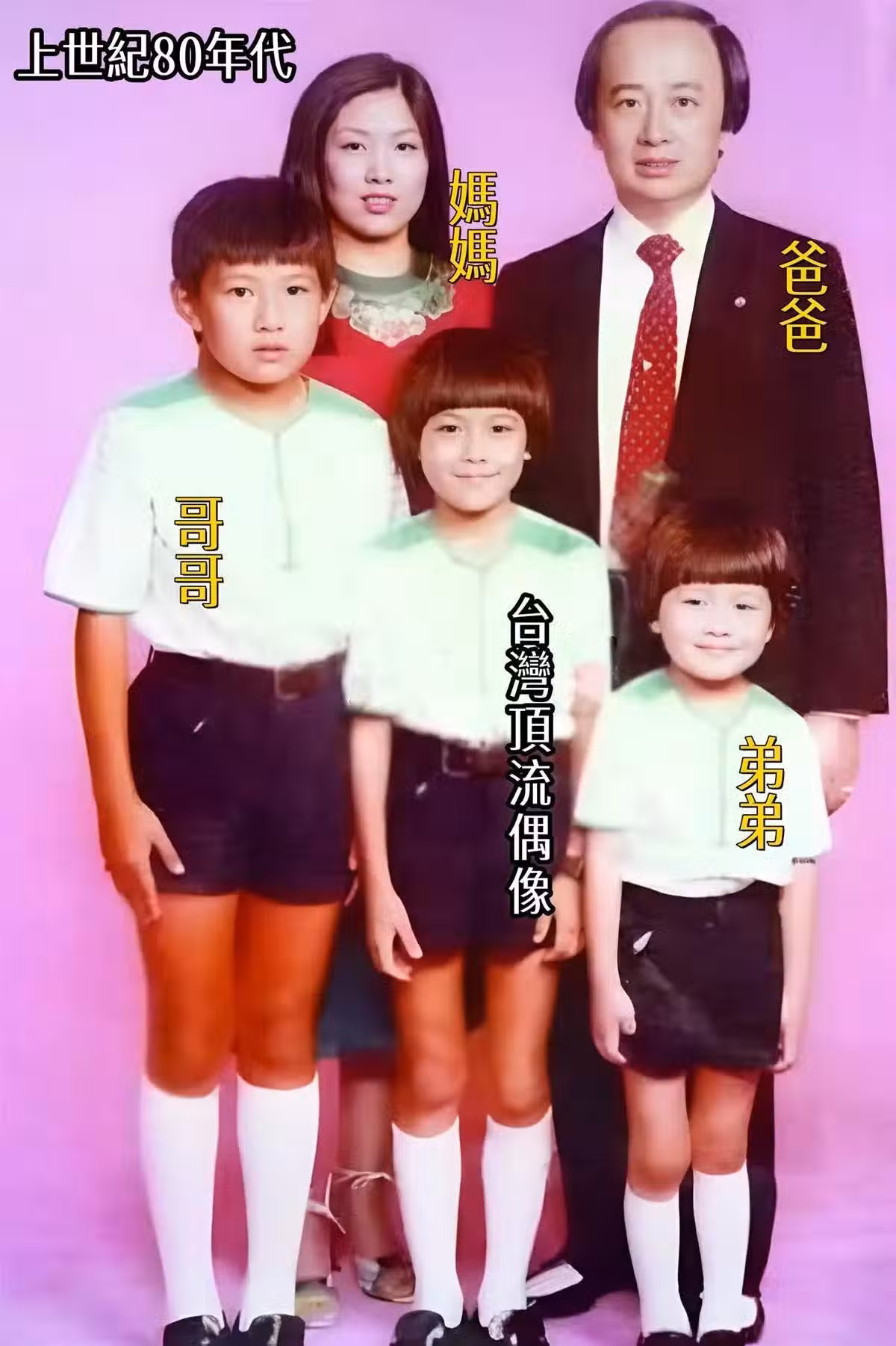 上世紀80年代,這張家庭合影中的11歲小男孩,你能猜到他是誰嗎?或許你一時認不出他來,誰能想到,這個面帶稚氣、站在父母和兄弟旁的孩子,幾年後會在短短兩個月內紅遍整個亞洲,成為台灣家喻戶曉的頂流偶像?