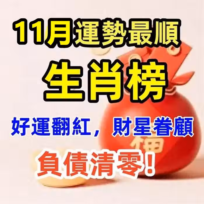 11月運勢最順生肖榜,好運翻紅,財星眷顧,負債清零!