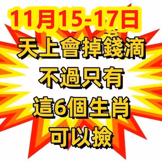 11月15 到 17日天上會掉錢滴,不過只有這6個生肖可以撿