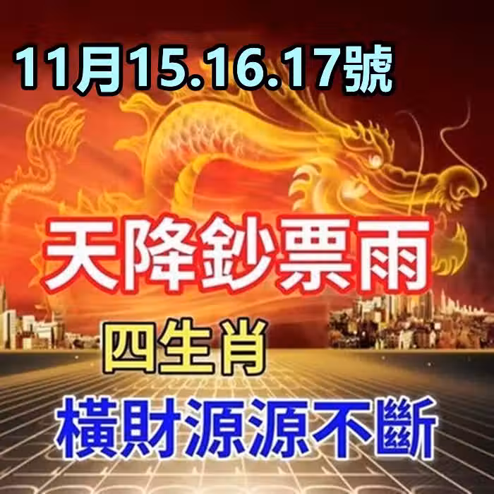 11月15.16.17號天降鈔票雨 ,橫財源源不斷的生肖 !