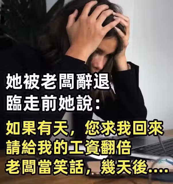 她被老闆辭退,臨走前她說:如果有天,您求我回來,請給我的工資翻倍。老闆當笑話,幾天後....