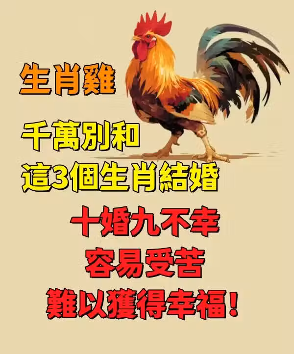 生肖雞,千萬別和這3個生肖結婚,十婚九不幸,容易受苦,難以獲得幸福!