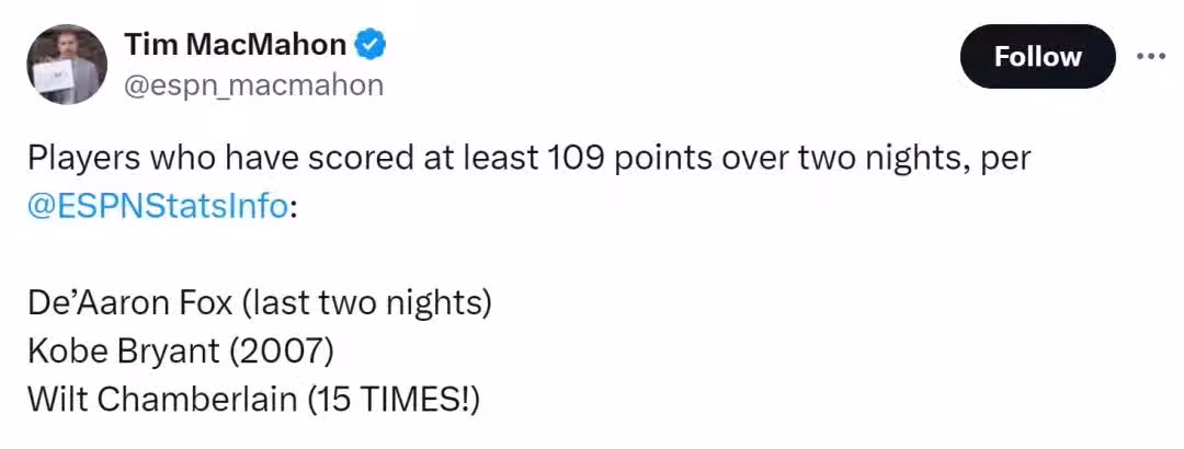 對於福克斯,過去兩場真的太夢幻了。 要知道,在這兩場之前,福克斯生涯一次45+都沒有過,他的最高分只有44分,但兩場過去,他的生涯最高分已經比杜蘭特、威少這樣的MVP和未來名人堂還要高。