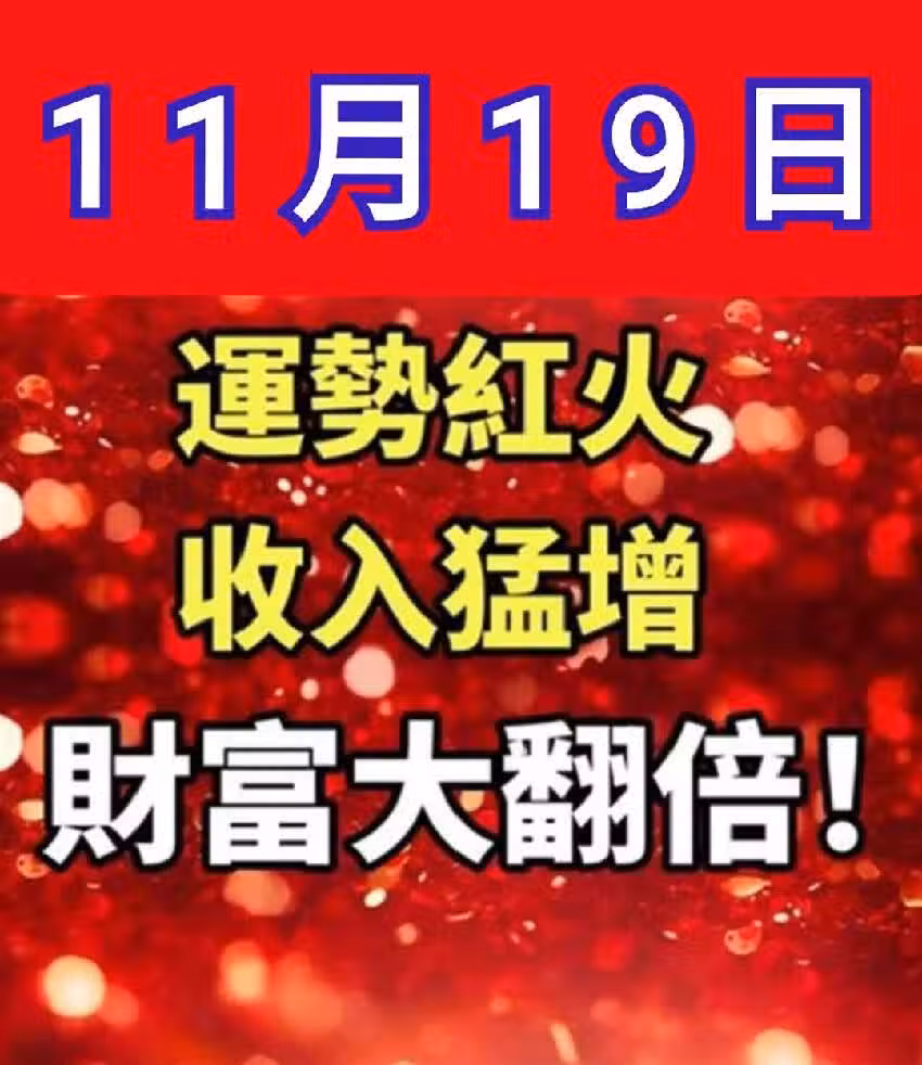 11月19日「 三生肖 」 運勢紅火 收入猛增 財富大翻倍