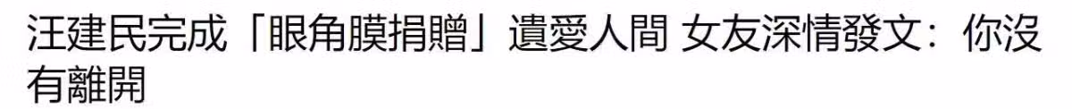 汪建民眼角膜捐獻完成,女友曬器官捐獻感謝狀,落淚形容已圓滿惹人淚目
