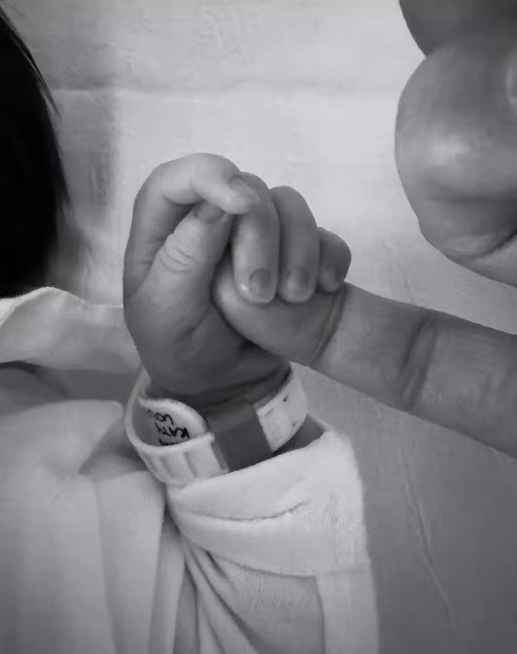 宋仲基分享了一張照片,是他用手指去觸碰女兒的小拳頭,因為用的是黑白的照片,沒辦法直觀的看到女兒的皮膚是否白皙。