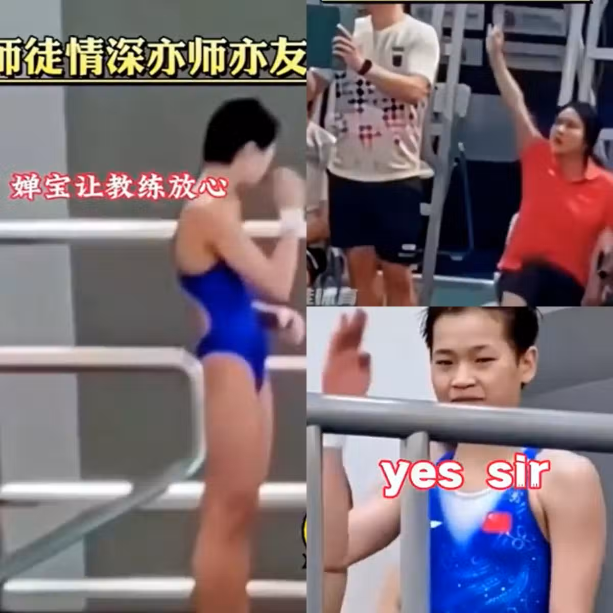 陳若琳收到並且給予了大大的鼓勵回應,全紅嬋又回了個敬禮,陳若琳揮揮手,看到全紅嬋的調皮,她知道她在開玩笑,還笑著有點無奈了。