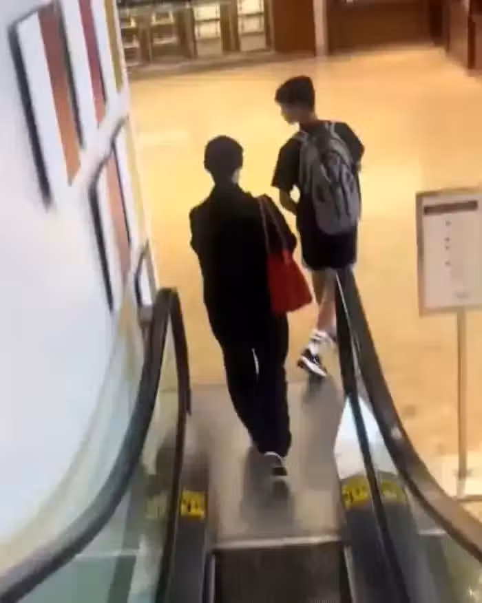 偶遇梁洛施和長子用餐,素顏皮膚白皙水嫩,15歲李長治和爸爸很像
