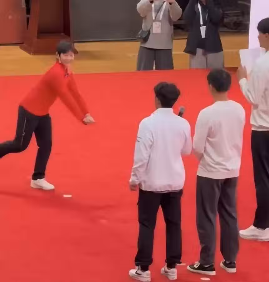 最搞笑的是,在全紅嬋與大學生們在台上玩遊戲做互動前,大學生們還十分激動的與全妹這位偶像握了手,不過全妹也非常有禮貌,一看學生們都彎著腰和自己握手,她自己也非常有禮貌的彎了腰。