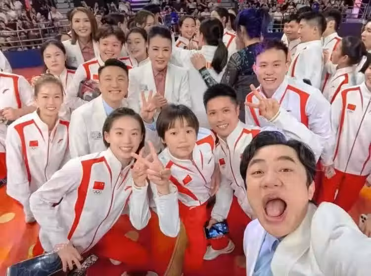 早前全紅嬋與內地奧運健兒代表訪港,王祖藍有幸跟他們跳水隊合照,全紅嬋開心舉V。