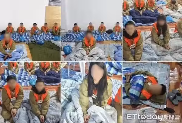 從照片中可以看出,林女臉色蠟黃、痘疤叢生,而她身穿紅色帽T、掛上DX879號碼牌,並裹著棉被打地鋪,而臉型也與先前在校時期更為臃腫。