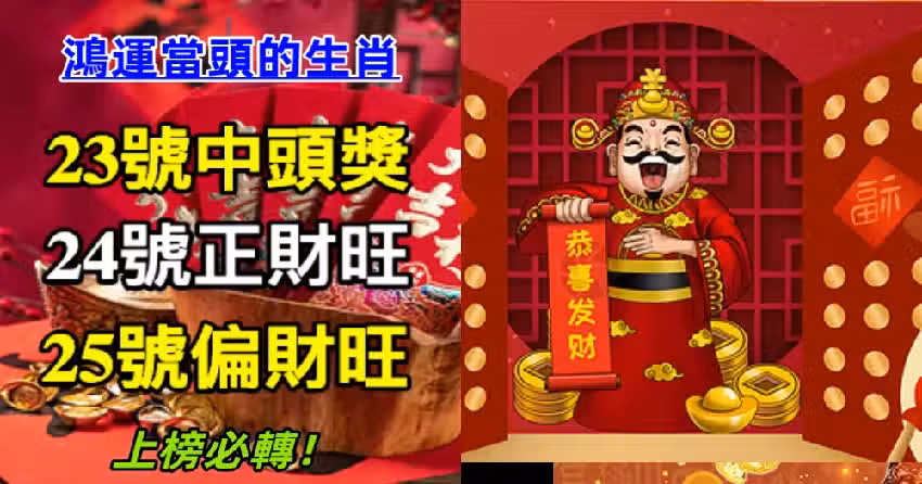 鴻運當頭的生肖:23號中頭獎,24號正財旺,25號偏財旺