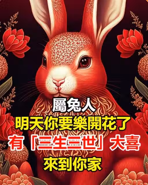 聽到這個好消息,屬兔的朋友們要準備好迎接好運了!明天,屬於你的好運勢將會全面爆發,象徵著「三生三世」般的美好祝福將降臨到你家中。