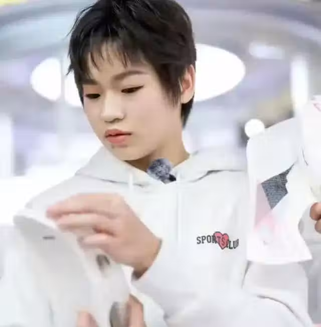 那一天,全紅嬋的短髮被精心打理成了蓬鬆而有型的大卷髮型,散發出一種慵懶而隨性的氛圍。她纖細的眉毛也被描繪得更加濃烈和立體,宛如兩道新月,這使得她整個人顯得更加精神煥發。她那引人注目的假睫毛和眼線進一步突顯了全紅嬋的眼睛,而最引人注目的是她塗抹的口紅,這無疑極大地提升了她的整體氣質。
