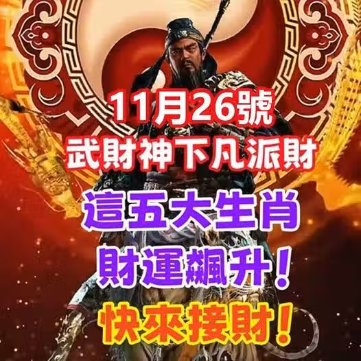 11月26號,武財神下凡派財,這五大生肖財運飆升!快來接財!