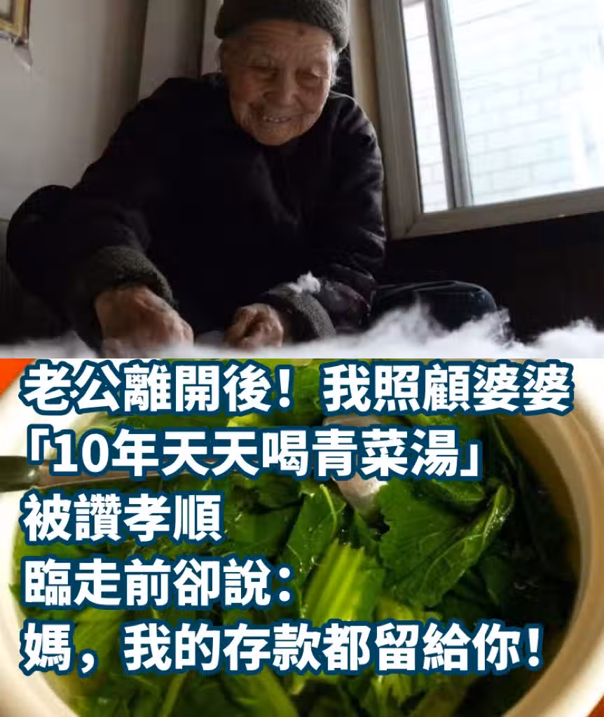老公離開後!我照顧婆婆「10年天天喝青菜湯」被贊孝順 臨走前卻說:媽,我的存款都留給你