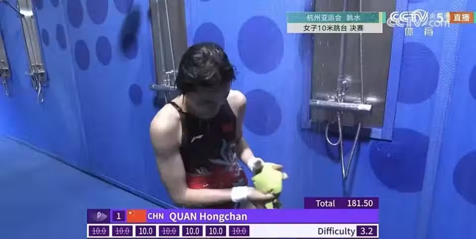 全紅嬋火到國外!一跳拿7個10分征服日本解說:10分 全部10分!