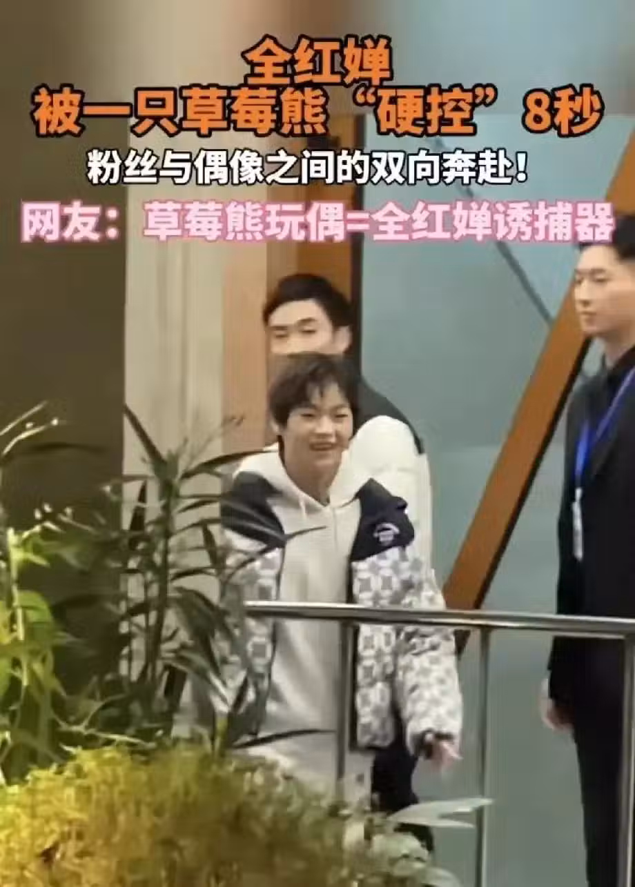 全紅嬋被草莓熊抱住8秒,冠軍私下這麼可愛!我看著我也笑忍了