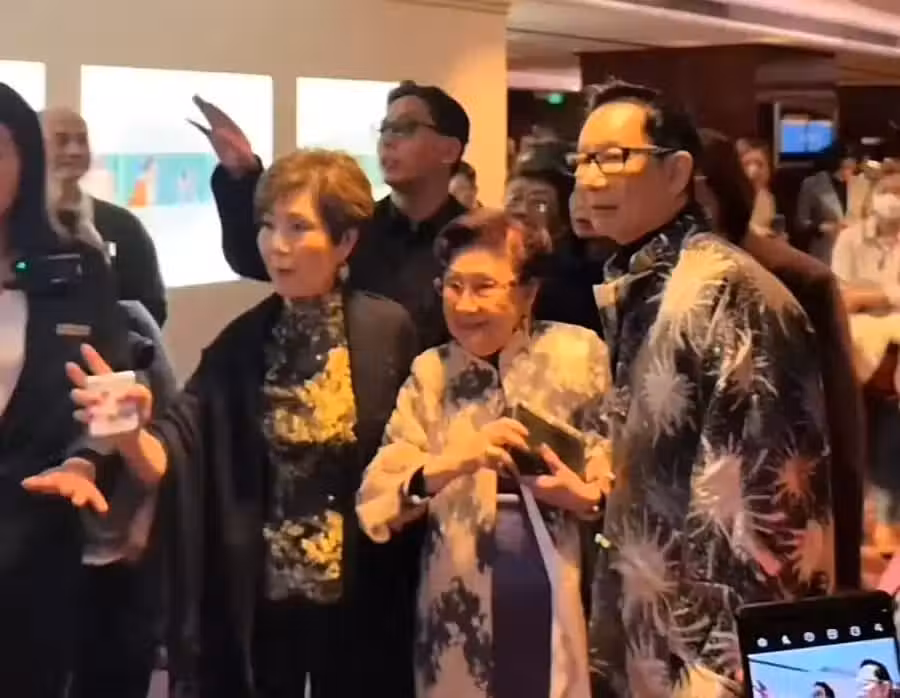 96歲白雪仙穿高跟鞋現身,慘被92歲胡楓撒嬌,輕撫臉龐鬼馬雙星