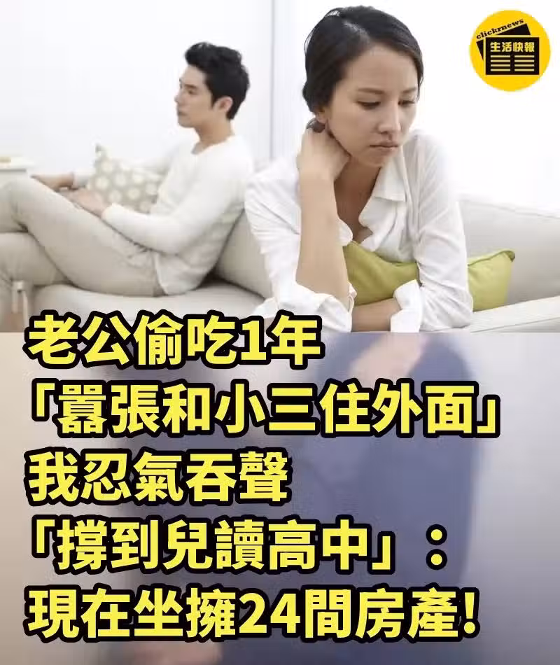 老公偷吃1年「囂張和小三住外面」,我忍氣吞聲「撐到兒讀高中」:現在坐擁24間房產!