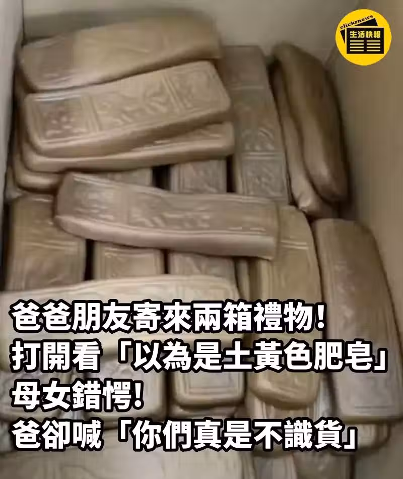 爸爸朋友寄來兩箱禮物!打開看「以為是土黃色肥皂」母女錯愕 爸卻喊「你們真是不識貨」