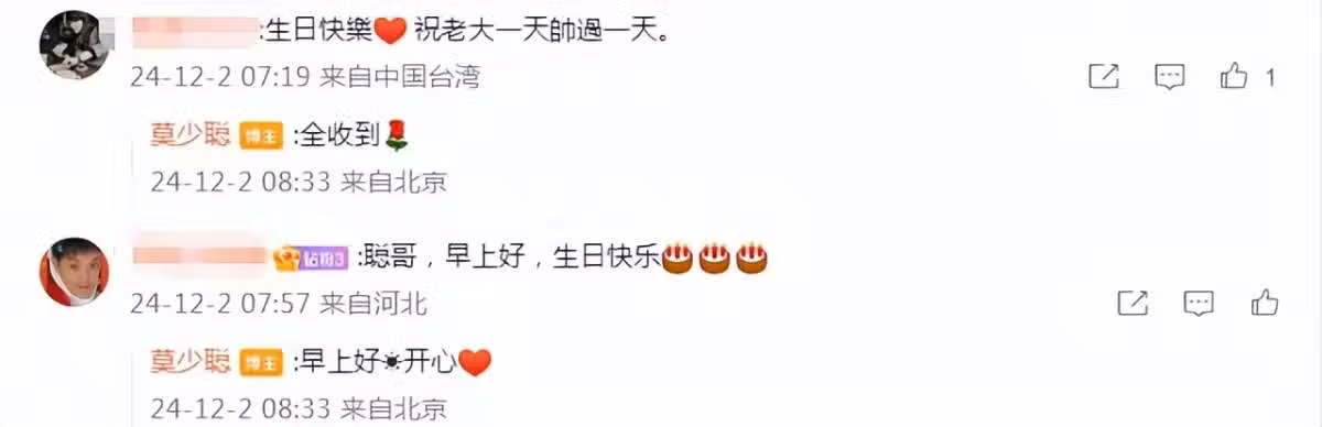 評論區下方,一眾粉絲們亦是紛紛送上生日祝福,莫少聰則是一一留言答謝,展私下親和一面。