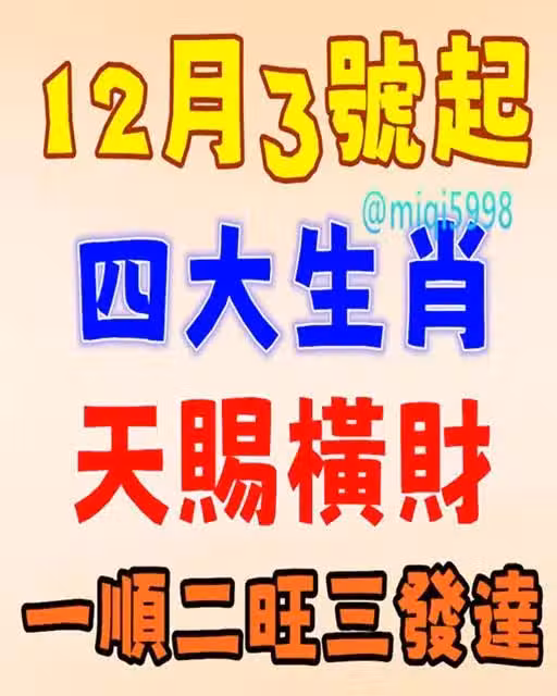 哎喲喂,各位看官們,你們的小福星又來報喜啦!都說「財運亨通擋不住,好運連連笑嘻嘻」,這不,12月3號開始,就有這麼四個生肖朋友要被財神爺點名啦,準備好接收這一波財源滾滾的暴擊了嗎?