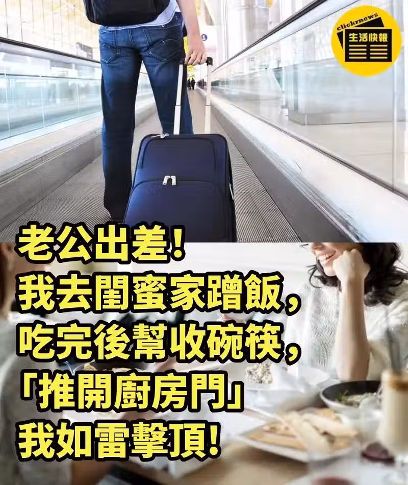 老公出差!我去閨蜜家蹭飯,吃完後幫收碗筷,「推開廚房門」我如雷擊頂