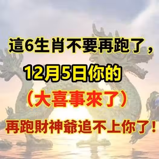 這六大生肖不要再跑了,12月5日是你的(大喜事)來了 ,再跑財神爺追不上你了 !