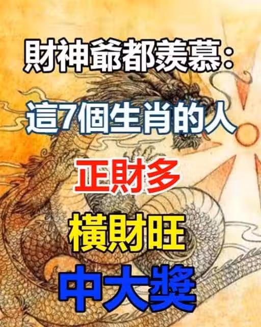 財神爺都羨慕:這7個生肖的人,正財多,橫財旺,中大獎