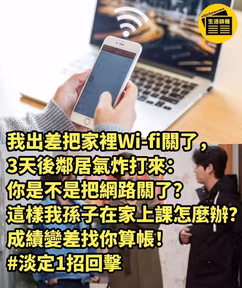 我出差把家裡Wifi關了,3天後鄰居氣炸打來:「你是不是把網絡關了?這樣我孫子在家上課怎麼辦?成績變差找你算帳!」 #淡定1招回擊