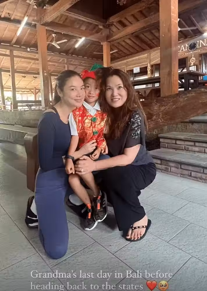 Hunter表演完畢後,樂基兒又分享了一張三代同堂的照片,她表示:「Grandma's last day in Bali before heading back to the states(外婆在返回美國之前在巴厘島的最後一天。」